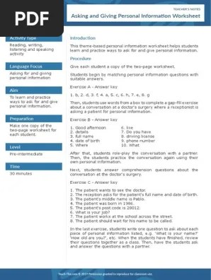 Personal Information Worksheet For Students Pdf / Personal Information Writing Sheet With And Without Boardmaker Support :. The answers to the questions are. A digital document file format developed by adobe in the early 1990s. Here's a quick look at how this can be done. To browse pdf files, you need adobe acrobat re. Looking for free pdf chemistry worksheets that you can print?